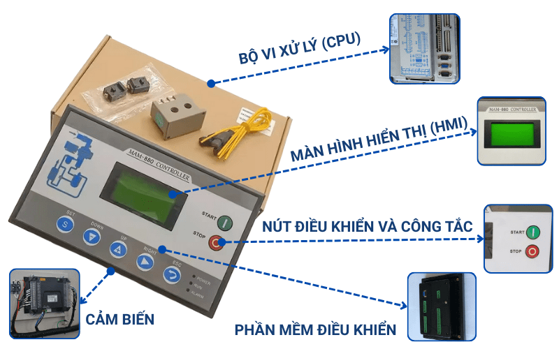 Bảng điều khiển máy nén khí là hệ thống tích hợp các thiết bị điện tử và phần mềm, được thiết kế để giám sát, điều khiển và tối ưu hóa hoạt động của máy nén khí. Nó hoạt động như một trung tâm xử lý, nhận dữ liệu từ các cảm biến và đưa ra lệnh điều chỉnh phù hợp để máy vận hành ổn định.