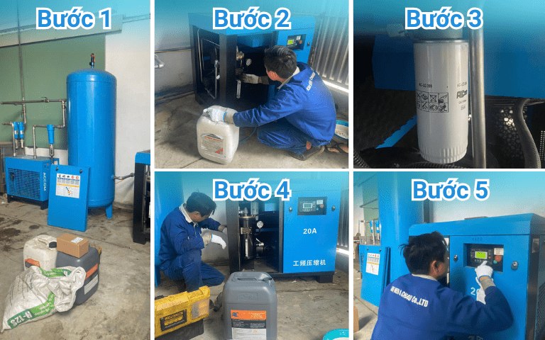 Bước 5: Khởi động và kiểm tra: Chạy thử máy để đảm bảo dầu lưu thông tốt trong hệ thống.
