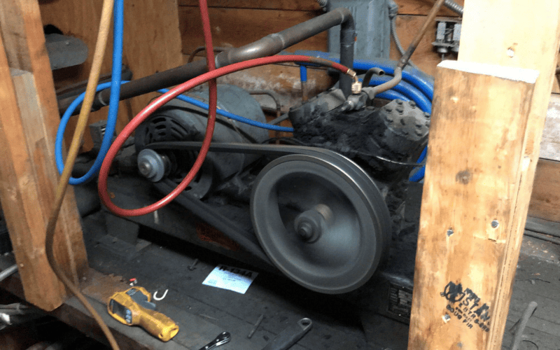- Dây curoa được lắp giữa pulley động cơ điện và pulley trục nén khí