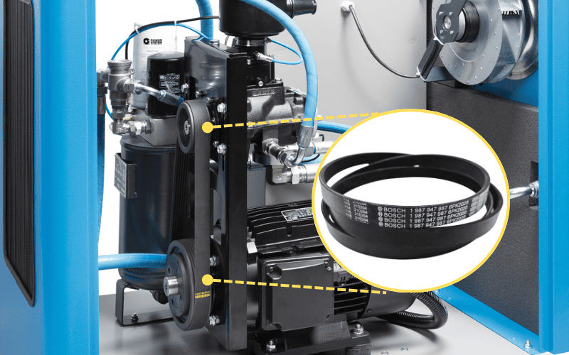 Trong máy nén khí dây curoa ACcom ở vị trí nào?