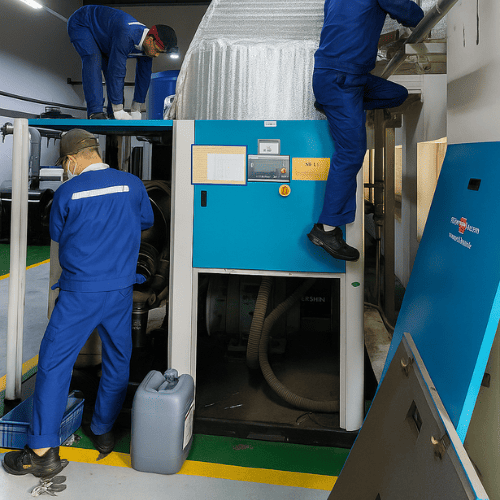 - Thay đồng bộ phụ tùng: vệ sinh cụm tách dầu, thay toàn bộ lọc và dầu mới.