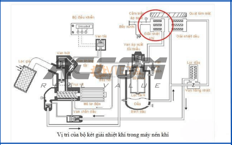 Sự phối hợp giữa các bộ phận này tạo nên một hệ thống làm mát hiệu quả, giúp máy nén khí hoạt động ổn định trong thời gian dài.