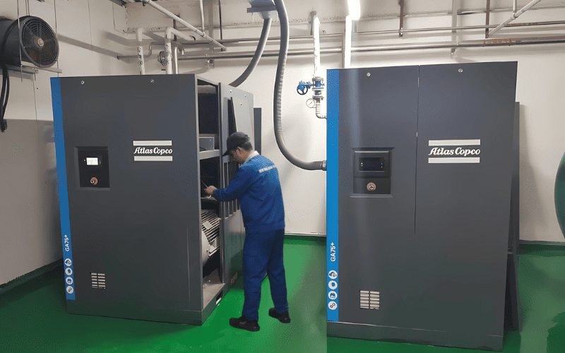 Máy sử dụng: Atlas Copco GA75+ (trục vít dầu, hoạt động 3 ca liên tục)