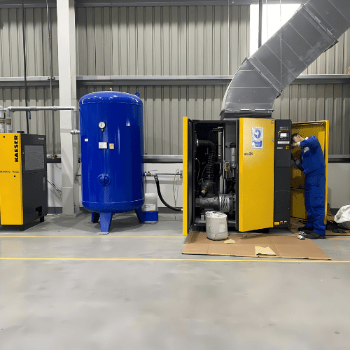 Tại KCN Sông Công (Thái Nguyên), doanh nghiệp xi măng vận hành máy nén khí Kaeser BSD 75 phục vụ hệ thống van, đóng bao và cấp khí điều khiển.