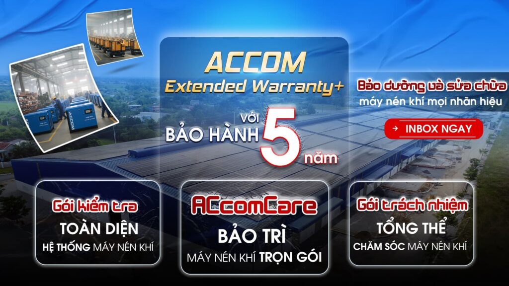 Nếu bạn cần GIẢI PHÁP CHĂM SÓC TOÀN DIỆN duy trì hiệu suất máy nén khí ổn định và hạn chế tối đa sự cố bất ngờ: ACcomCare – Bảo trì máy nén khí trọn gói, an tâm trọn vẹn chính là lựa chọn tuyệt vờI