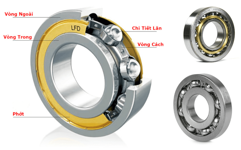 - Một số vòng bi được trang bị phớt chắn để ngăn bụi bẩn, tạp chất xâm nhập và giữ dầu bôi trơn bên trong.